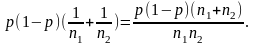 Величина р(1-р) достигает максимума при р=1/2, и этот максимум равен 1/4. Если р=1/2, а объемы двух выборок совпадают и равны 500, то дисперсия разности частот равна
