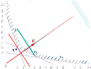 через допустимое множество проводится перпендикуляр к целевому вектору – это линия уровня целевой функции;
