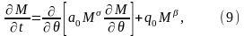 Один із доданків праворуч (q0М) звичайно трактують як позитивний зворотний зв’язок, котрий в аналізованому явищі іде через мотивацію споживачів. Другий доданок, який містить у своєму складі (а0М), відображує дисипативний процес народження функціональних структур, які стосовно до ринкового простору визначають нерівномірність попиту і реалізації рекламованого товару в різних місцях. Змістова сторона цього доданку полягає також в тому, що при М = 0 ніяких ринкових змін не відбудеться, а чим більше М, тим потенційніша спроможність рекламованого товару перейти на другий рівень реалізації.