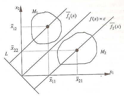 Геометрическая интерпретация этих функций - две параллельные прямые, проходящие через центры классов (множеств) (рис.2).