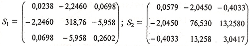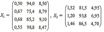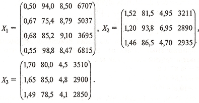 Для удобства запишем значения исходных переменных для каждой группы предприятий в виде матриц