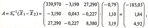 Отcюда находим вектор коэффициентов дискриминантной функции по формуле: