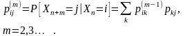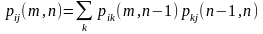 Розглянемо вірогідність переходу системи із стану i на m-том кроці в стан j на n-том кроці для n > m.