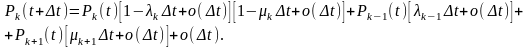 Таким чином, вірогідність того, що стан до збережеться незмінним, буде рівна твору [1 – лkДt+o(Дt)] [1 – мkДt+o(Дt)].