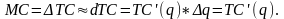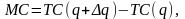 Рассмотрим ситуацию: пусть q – количество произведённой продукции, ТC(q) – соответствующие данному выпуску совокупные издержки (total costs), тогда q – прирост продукции, а ТС – прирост издержек производства.