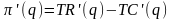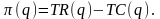 Пусть q – выпуск продукции (в натуральных единицах); TR(q) – выручка от продаж; TC(q) – издержки производства, связанные с выпуском q единиц продукции. Тогда прибыль