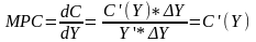 Использование производной позволяет определить такую категорию, как предельную склонность к потреблению MPC (marginal property to consume), показывающую долю прироста личного потребления в приросте дохода: