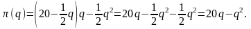 П=(5 – Q/20)Q – (50 + 2Q)= – Q2 + 60Q - 1000 max