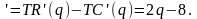 Задача №4: Найти оптимальный объём производства фирмы, функция прибыли которой задана таким образом: П(q)=TR(q) – TC(q)=q2 – 8q + 10.