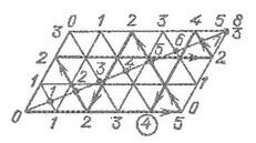 Как ни странно, но головоломки на переливание жидкостей можно очень легко решать, вычерчивая бильярдную траекторию шара, отражающегося от бортов ромбического стола! Границы таких столов удобнее всего рисовать на бумаге, на которую нанесена сетка из одинаковых равносторонних треугольников. В рассматриваемой задаче стороны стола должны иметь длины 7 и 11 единиц (рисунок 1).