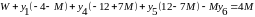 | W | 1 | -4-M | 7M-12 | 12-7M | 0 | -M | 0 | 0 | 4M |