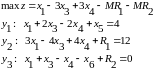 | W | 1 | -40/7 | 0 | 0 | 0 | -12/7 | -7/3M+4 | -M+12/7 | 48/7 |