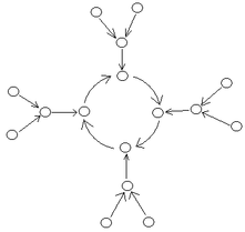 является циклом (возможно длины 1), каждый элемент которого притягивает дерево (т.е. является корнем ориентированного дерева) (см. рис. 3.2.1).