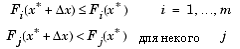 Отметим, что поскольку F(x) является неким вектором, то любые компоненты F(x) являюся конкурирующими и отсутсвует некое единое решение поставленной задачи. Взамен этого, для описания характеристик целей вводится концепция множества точек неулучшаемых решений [41] (так называемая оптимальность по Паретто [4],[6]). Неухудшаемое решение есть такое решение, в котором улучшение в одной из целей приводит к некому ослаблению другой. Для более точной формулировки данной концепции рассмотрим некую область допустимых решений