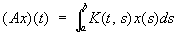 (где K (t, s) — ограниченная функция — ядро А) — непрерывен, в то время как определённый на подпространстве C1(a, b) Ì L2(a, b) оператор дифференцирования
