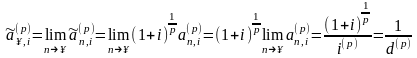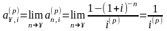 Для обычной вечной p - срочной ренты с начислением процентов 1 раз в год получаем при n → ∞: