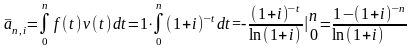 Коэффициент дисконтирования постоянной непрерывной ренты при начислении процентов 1 раз в год получим по определению: