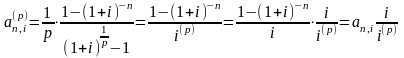- коэффициент дисконтирования обычной p - срочной ренты при непрерывном начислении процентов.