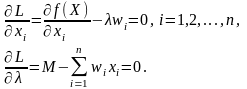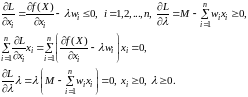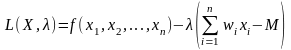 Задача (3) – це задача нелінійного програмування щодо відшукання умовного максимуму функції. Для даної задачі формують функцію Лагранжа: