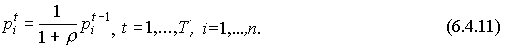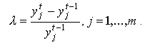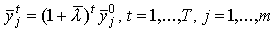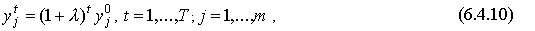 - интенсивность процесса j , установившаяся к началу планового периода. Заметим, что t в правой части (6.4.10) является показателем степени, а в левой - индексом.