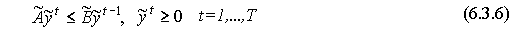- конечное потребление в год t. Поэтому условие (6.3.1) требует, чтобы весь годичный запас товаров покрывал все годичные затраты ежегодно. Неравенство (6.3.2) задает условие на необходимый объем трудовых ресурсов, неравенство (6.3.3) говорит о том, что запасы на данный год не могут превышать результатов производства предыдущего года, и, наконец, уравнение (6.3.4) описывает динамику роста валового выпуска из года в год.