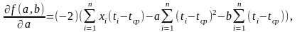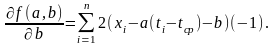 Чтобы найти эти оценки, надо вычислить частные производные от функции f(a,b) по аргументам a и b, приравнять их 0, затем из полученных уравнений найти оценки: Имеем: