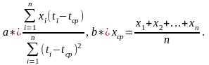 xk = a (tk - tср)+ b + ek , k = 1,2,…,n,