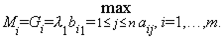 5) Показатель эффективности стратегии Аi по максимаксному критерию обозначим через Мi и определим его по формуле (3) с учетом (18) и того, чтоl1=1: