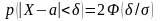 відому з теорії ймовірностей формулу про ймовірність відхилення нормально розподіленої випадкової величини