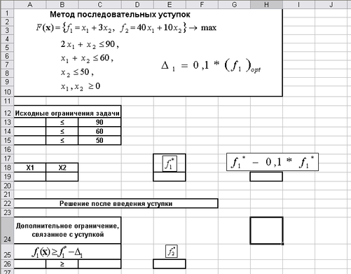 методом последовательных уступок, если уступка по первому критерию составляет 10% от его оптимального значения.