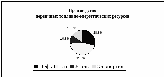 Из диаграммы и таблицы видно, что газ занимает прочное место в ТЭКе России. Добыча газа превышает добычу других видов топливных ресурсов. Благодаря обширным запасам, конкурентоспособным ценам и экологическим преимуществам, добыча и потребление природного газа будут расти опережающими темпами по сравнению с другими первичными энергоносителями.