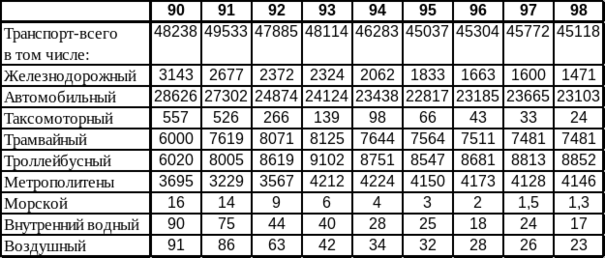 Перевозки пассажиров по видам транспорта общего пользования