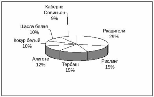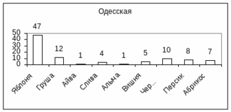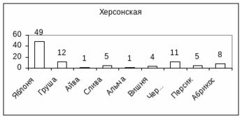 .Диаграммы соотношений плодовых пород по югу Украины, %1