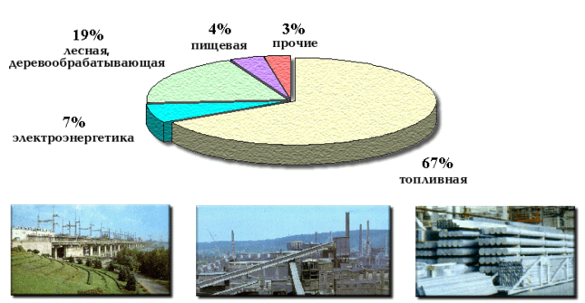 В сложившейся структуре промышленности Республики Коми ведущую роль играют топливно-сырьевые отрасли. В 1995 на их долю приходилось 75,7% товарной продукции промышленности, 76,7% промышленно-производственного персонала, 83,6% среднегодовых промышленно-производственных фондов.