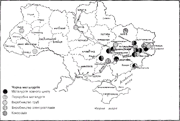 обачити розміщення чорної металургії України наочно можна з наступної карти: