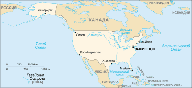 Так же США имеют ряд владений: Пуэрто-Рико и Виргинские острова в Карибском море, Восточное Самоа, Гуам, Мидуэй, Уэйк и др. в Тихом океане.
