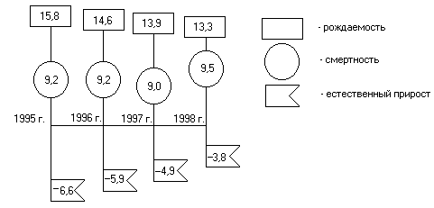 оэффициенты естественного движения населения Пермской области за 1995-1998 гг.: