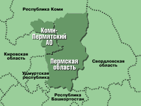Область граничит с двумя областями и тремя республиками Российской Федерации: на севере с республикой Коми, на западе - с Кировкой областью и Удмуртией, на юге с Башкирией, на востоке - со Свердловской областью.