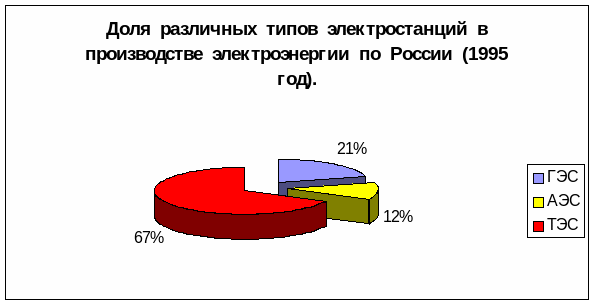 Итак, основным типом электростанций в России являются тепловые (ТЭС). Эти установки вырабатывают примерно 67% электроэнергии России.