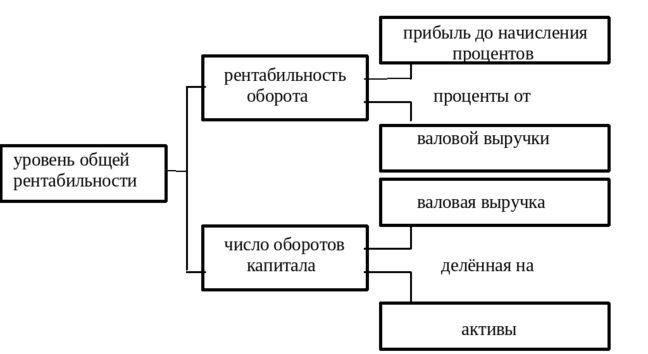 Чем выше валовая выручка фирмы, тем больше число оборотов ее капитала. В итоге уровень общей рентабельности определяется по следующей формуле: