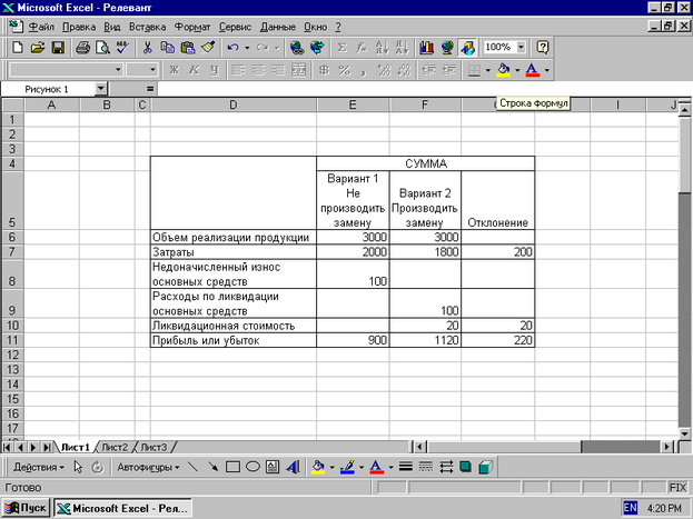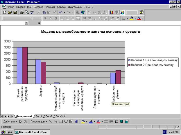 При составлении этой модели основные средства учитываются по статьям с определением фондорентабельности. На рисунке 3.3.3 приведена модель целесообразности замены основных средств.