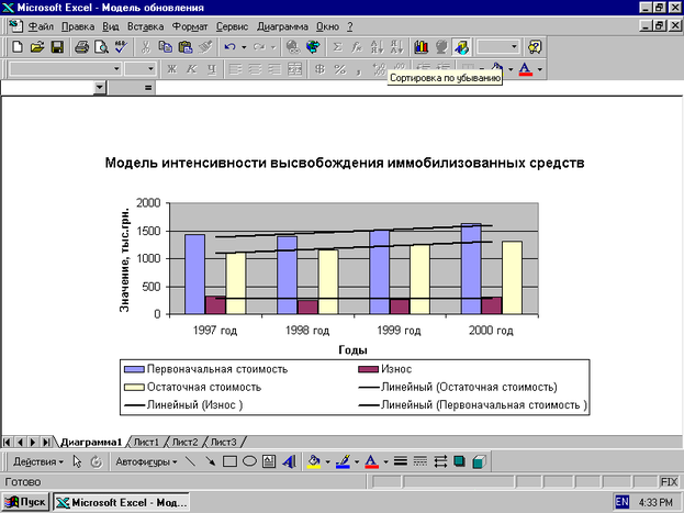 Если информации данной модели не достаточно для принятия управленческих решений при замене устаревшего оборудования, бухгалтер осуществляет построение модели минимизации затрат в течение всего срока службы основных средств.