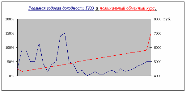 Высокая доходность ГКО сокращала собственные доходы бюджета, привлекая на рынок гособлигаций не только средства граждан, но и собственные средства предприятий и парализуя тем самым инвестиционно - производственную деятельность. Свертывание экономической активности в реальном секторе еще более сокращало налогооблагаемые доходы предприятий, их собственников и работников.