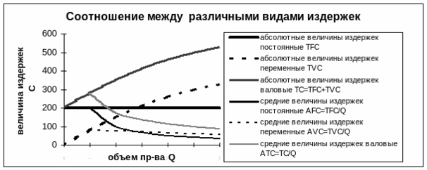| Объем пр-ва | абсолютные величины издержек | предельные издержки | средние величины издержек | |||||