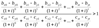 Вариантом соотношения прибыли и издержек является отношение измерения предельных издержек между двумя альтернативными проектами. Алгебраически это отношение можно выразить следующим образом:
