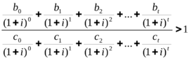 Критерий отношения прибыли и издержек может быть полезен тогда, когда принимается решение об инвестициях в те проекты, для которых отношение текущей стоимости доходов к текущей стоимости издержек больше единицы. Уравнение этого критерия имеет вид