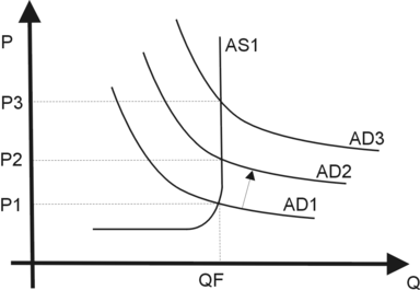 Причиной инфляции спроса является увеличение платежеспособности спроса на товары, по сравнению с его прежней величиной. В самом общем плане инфляция спроса означает нарушение равновесия между совокупным спросом и совокупным предложением со стороны спроса. Покажем инфляцию спроса на графике: