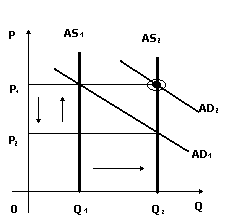 Монетарное правило связывает расширение денежного предложения с обычным сдвигом кривой AS под влиянием роста объема производства. Оно гарантирует, что кривая AD сместится вправо вверх и будет соответствовать сдвигу кривой AS. В результате при увеличении реального объема производства будет обеспечена стабильность цен.