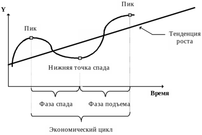 Экономисты называют колебания объема национального производства и занятости экономическими циклами.