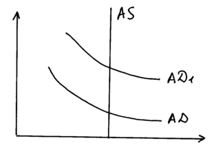 Классическая школа считает, что рыночная экономика является саморегулирующейся системой, т.е. МЭР обеспечивается автоматически, при этом все цены, в т.ч. затратные факторные цены свободно меняются. При увеличении совокупного спроса первоначально происходит увеличение объема производства, однако за тем растут факторные цены. В результате дальнейший рост производства становиться нецелесообразным. Объем ВНП возвращается к первоначальному потенциальному уровню.